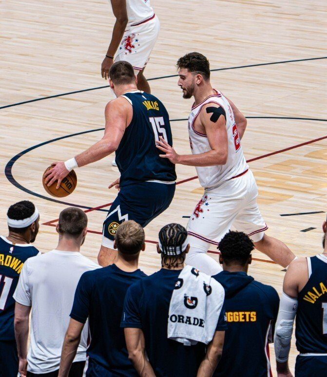 第二节掘金找到投篮手感,连得7分过后追到了31-33只差2分。此后双方在场上陷入到拉锯战,比分交替领先。掘金在最后时刻63秒之内打出一波10-0,一举将分差拉开。半场比赛结束,掘金58-51领先。