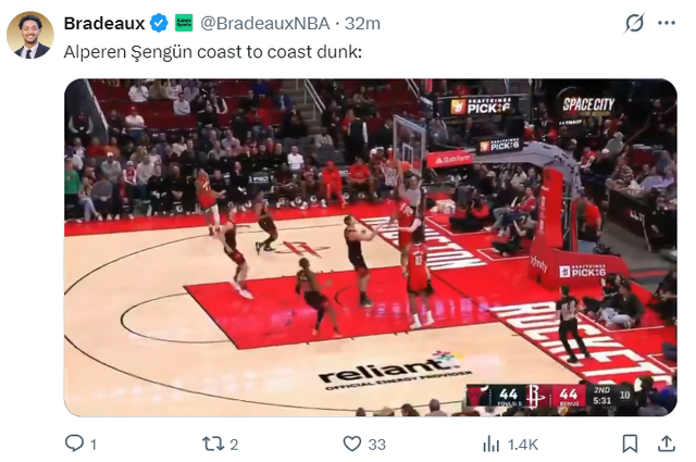 申京在对阵国王的比赛中已经是提前4-8天复出他明显是收着打的,但回来主场后他的脚踝感觉明显好多了,申京次节完成了一个一条龙的持球单臂劈扣。